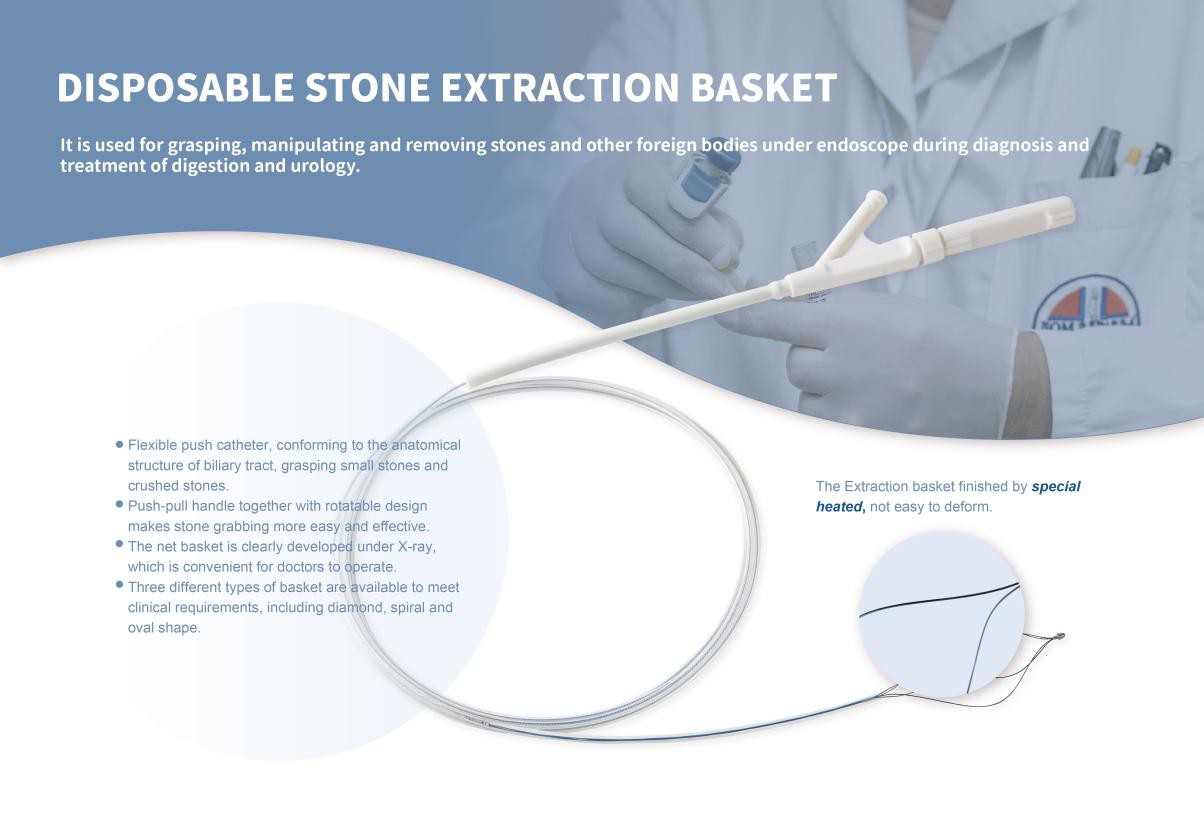Le panier de récupération endoscopique est utilisé pour l'extraction endoscopique des calculs biliaires et des corps étrangers.